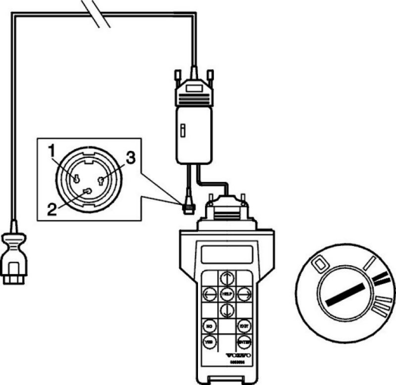 - Volvo Scan Tool (ST) connected to data link connector (DLC).