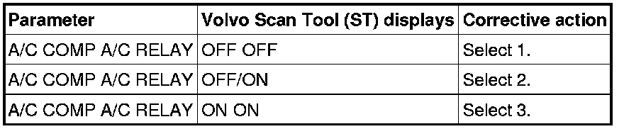 Make a note of the air conditioning (A/C) compressor and air conditioning (A/C) relay values on the Volvo Scan Tool (ST)