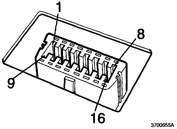 - Connect a voltmeter between data link connector (DLC) terminal 16 and ground.