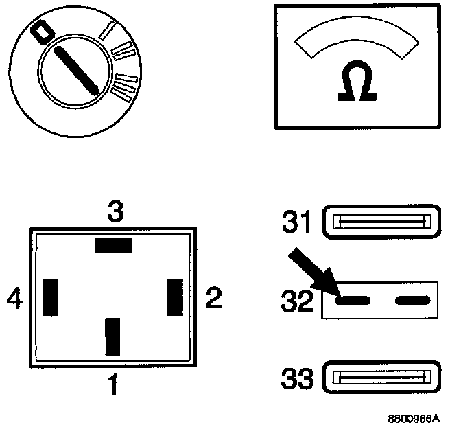 - First connect an ohmmeter between terminal X and terminal 30 on the ignition switch and then between terminal X and the other terminal 30 on the ignition switch.
