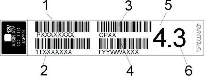 The transmission control module (TCM) P/N and serial numbers are stamped on a plate on the unit.