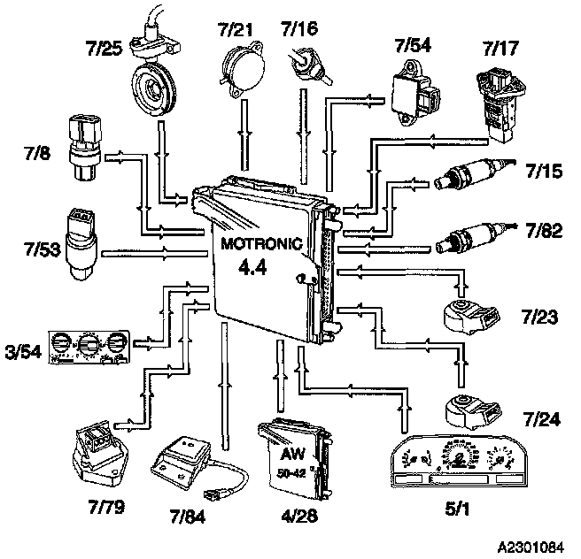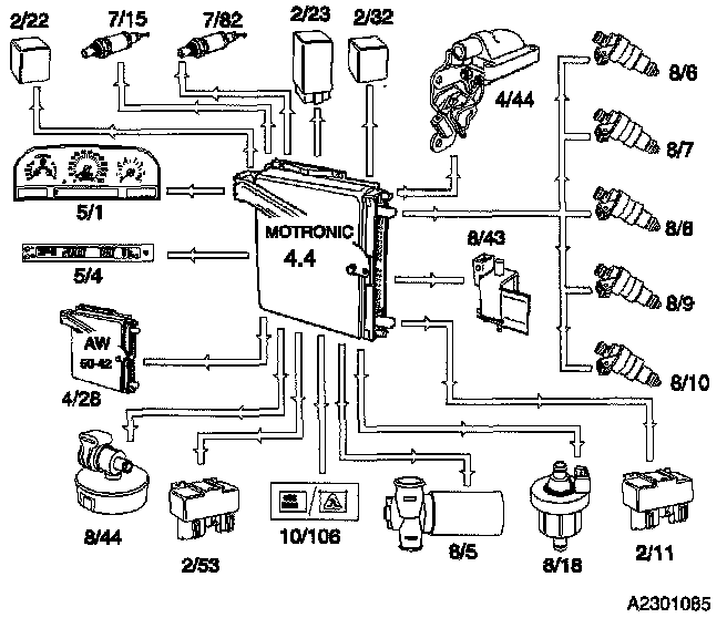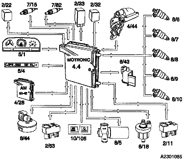 The Motronic 4.4 is an Electronic Fuel / Ignition Engine Management System which controls:
