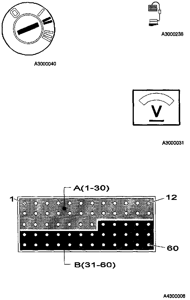 - Connect a voltmeter between # 29 (# A29) and # 44 (# B14) on the test box.