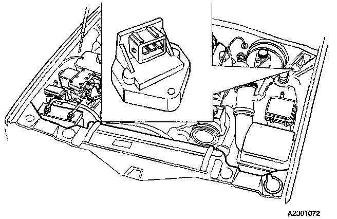 The accelerometer is supplied with 5 Volts from the ECM. Its output signal is approx. 2.5 Volts for a stationary car. When there is vertical movement the signal will oscillate around 2.5 Volts.