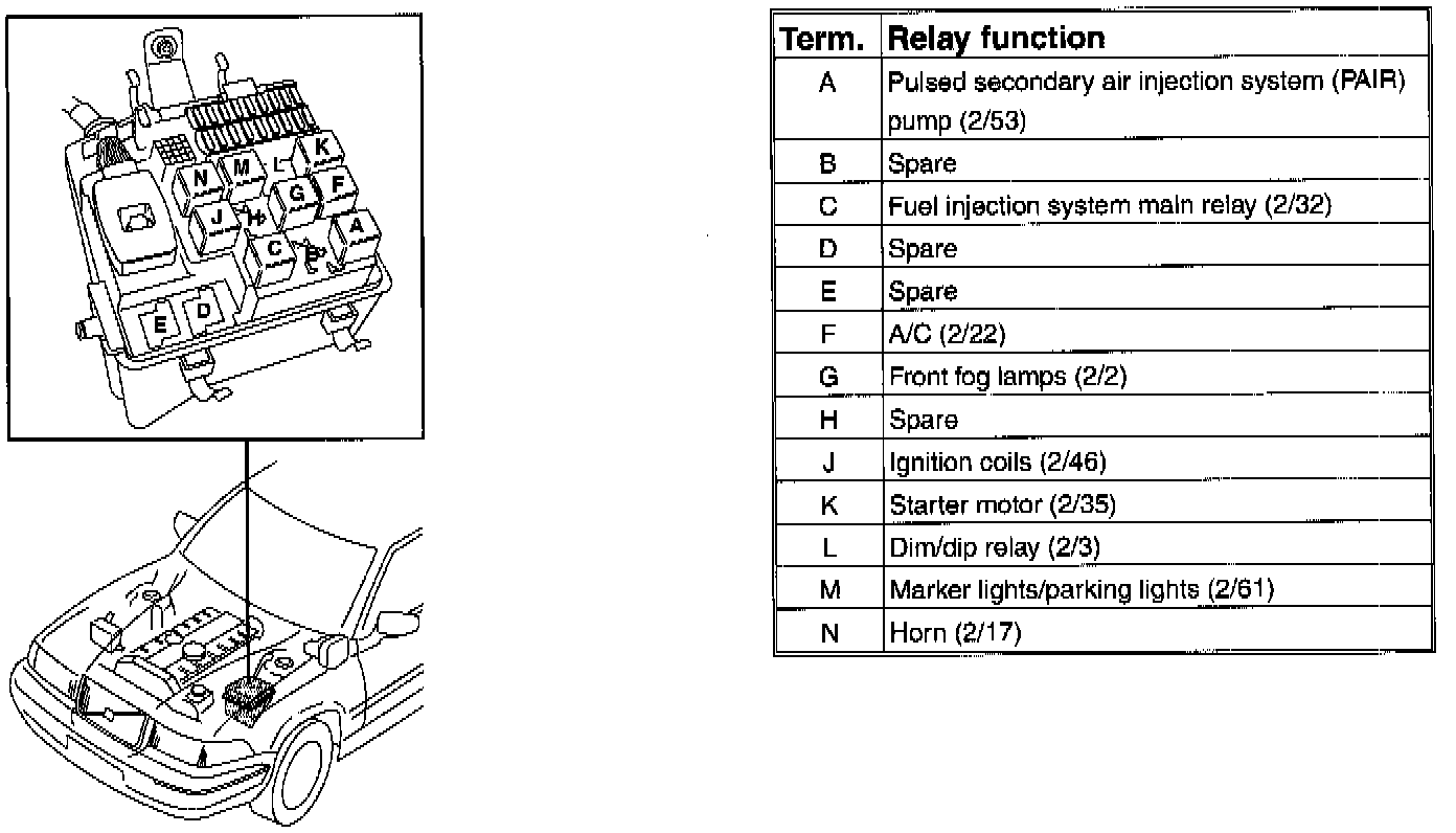 Relays In the Relay/Fusebox, In the Engine Compartment:
