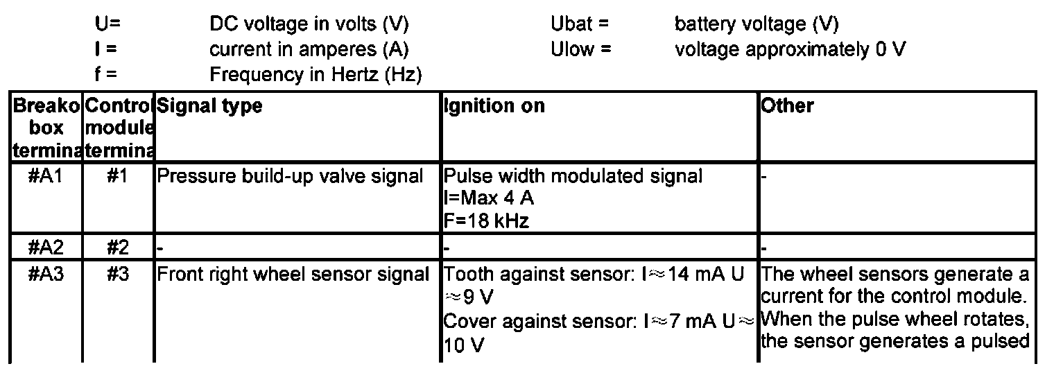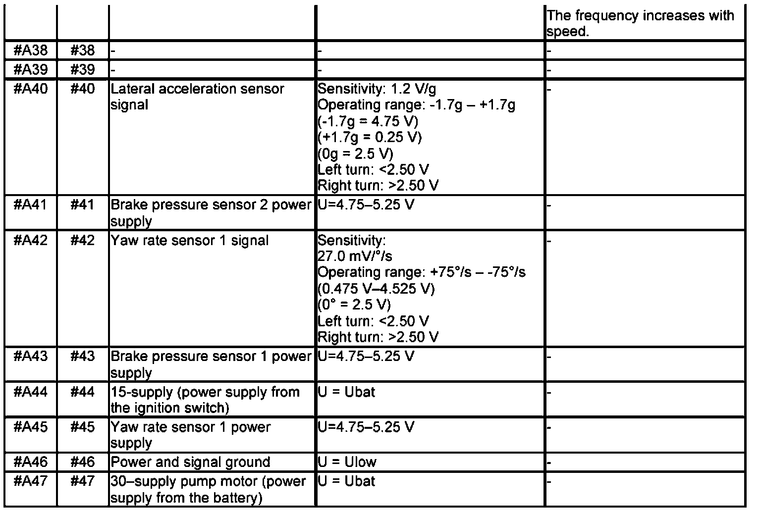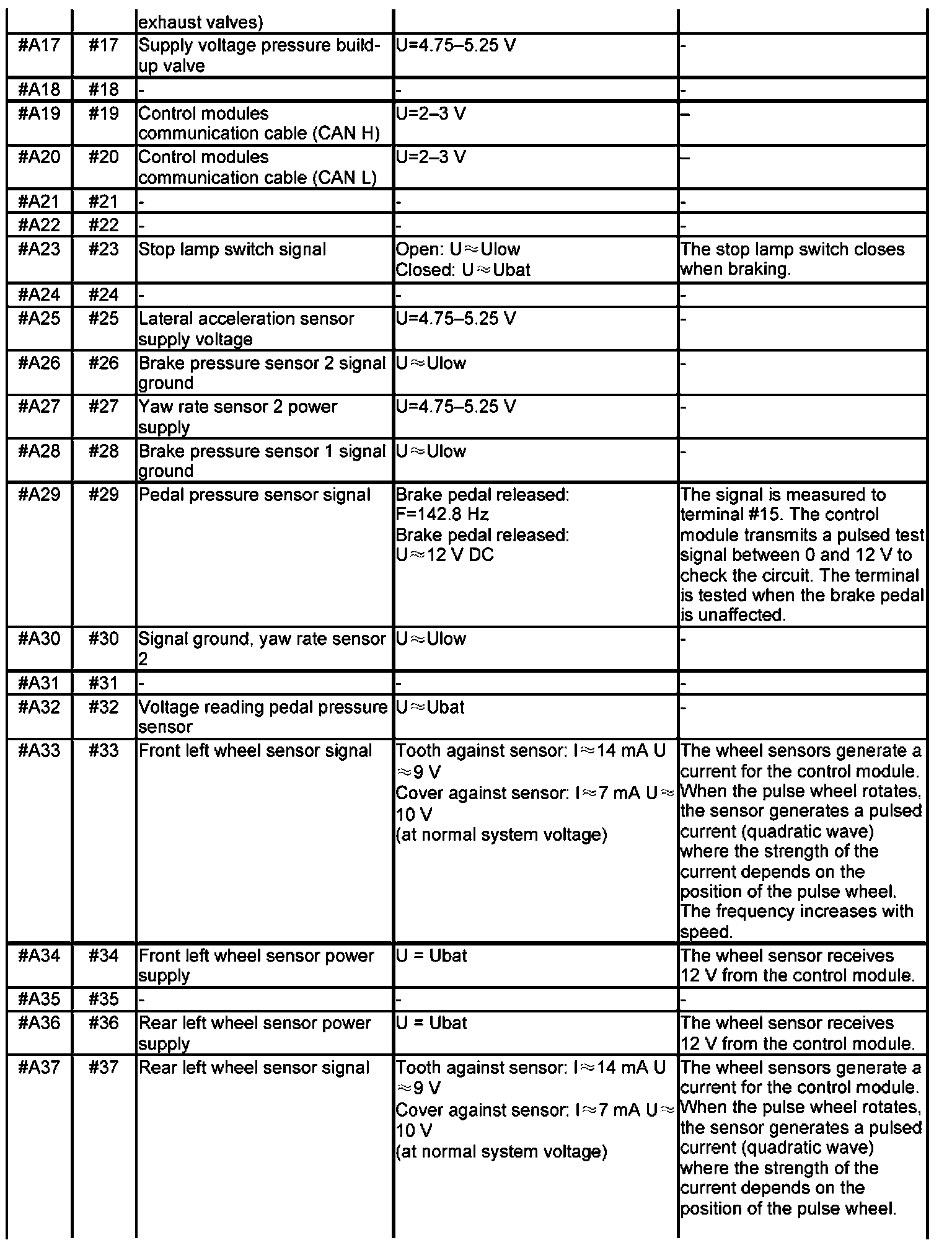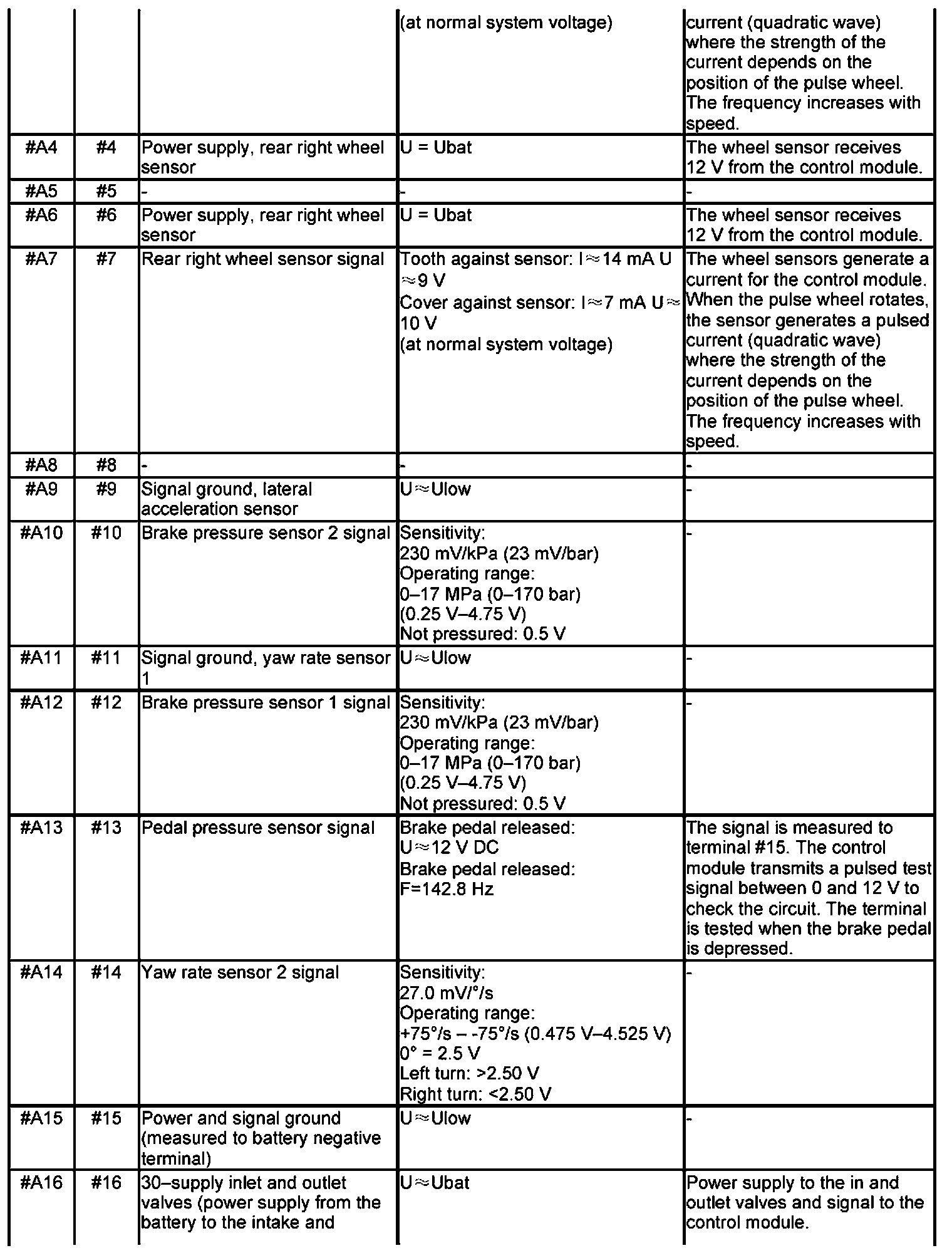 Signal specification, ABS / DSTC (dynamic stability and traction control) control module