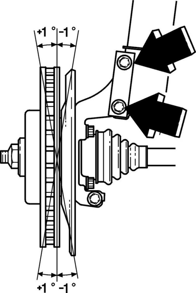 Note! Camber angle is to be adjusted if it lies outside of the tolerance 0° ± 1°. Variation between the left and right side may be no more than 1°.