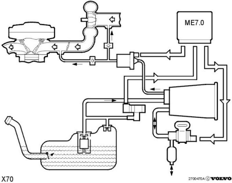 The fuel tank system consists of fuel tank, fuel filler pipe, EVAP canister, canister purge (CP) valve and all pipes between these components. To be able to diagnose the fuel tank system, it is also equipped with fuel tank pressure sensor and EVAP canister shut-off valve.