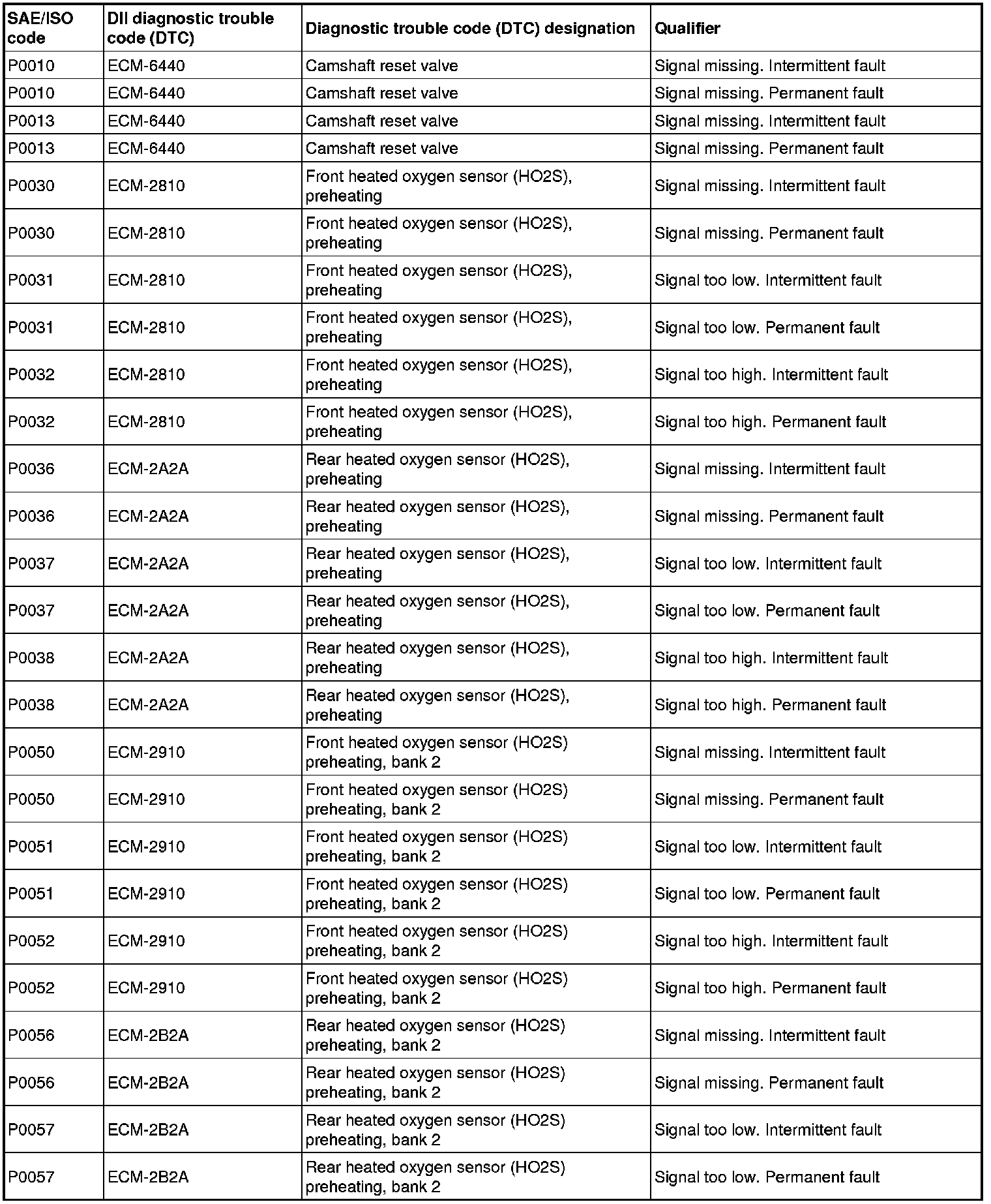 The table below is a conversion table between standardized diagnostic trouble codes (DTCs) (SAE/ISO) and the equivalent Volvo diagnostic trouble codes (DTCs) (DII).