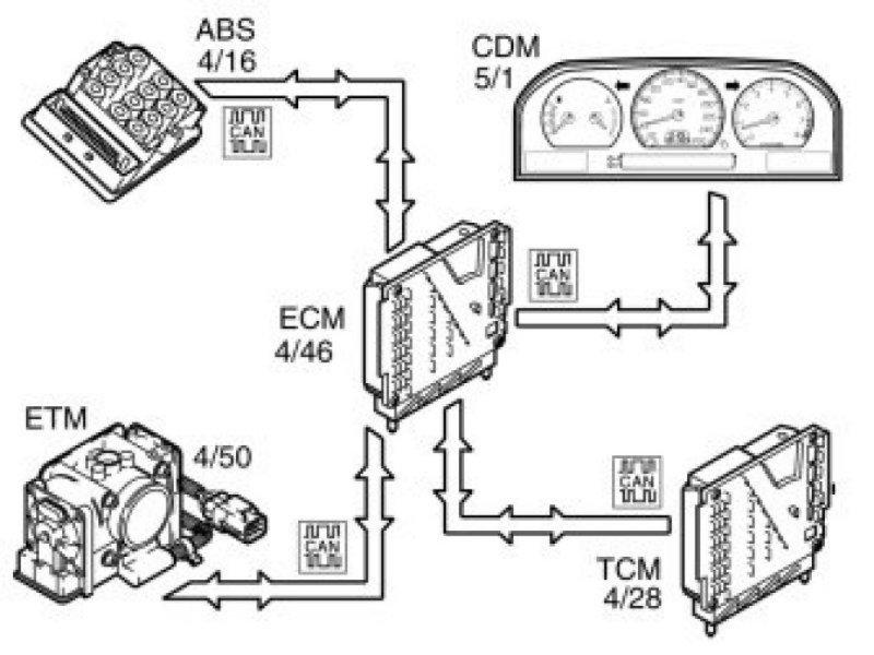 The control modules communicate with each other in a network via standardized serial communication - CAN (controller area network). The diagnostic trouble code is generated if the engine control module (ECM) registers a serious disruption on the CAN network (CAN communication blocked).