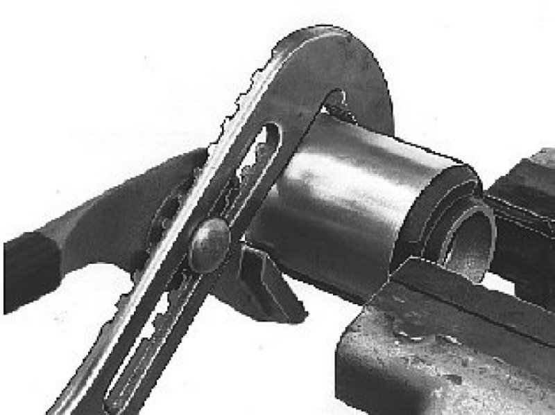 Install the bushing in a vise. Turn the cutting sleeve until it releases from the bushing. Use a pipe wrench.