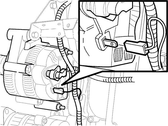 - Disconnect the connector (1-pin receptacle terminal) from the generator (GEN) terminal pin D+.