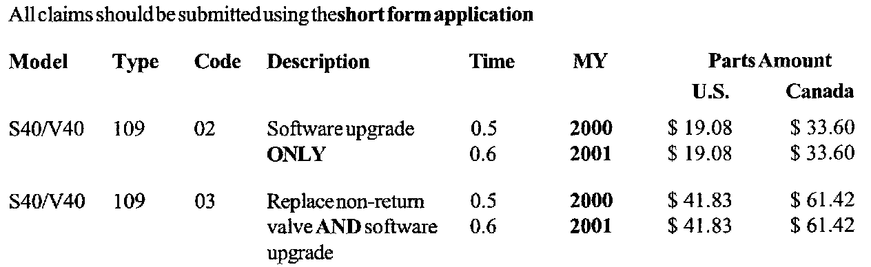 Volvo Cars of North America, LLC and Volvo Cars of Canada Ltd. have determined that a Service Upgrade is required on certain model year 2000 and 2001 S40 and V40 vehicles.