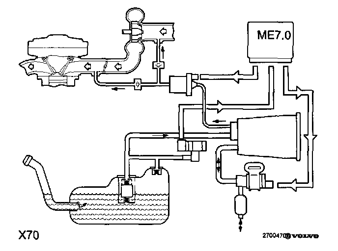 - The canister purge (CP) valve is closed and the EVAP canister shut-off valve is still closed and there is negative pressure in the fuel tank. This negative pressure will decrease slowly. The decrease rate depends on fuel level, fuel evaporation and any leaks. Leakage flow is calculated by comparing pressure increase speed with the pressure decrease speed from stage 4 and by compensating for the evaporation measured in stage 2. If the calculated leakage flow exceeds a certain level this indicates a smaller leakage in the fuel tank system and diagnostic trouble code for small leak is stored.