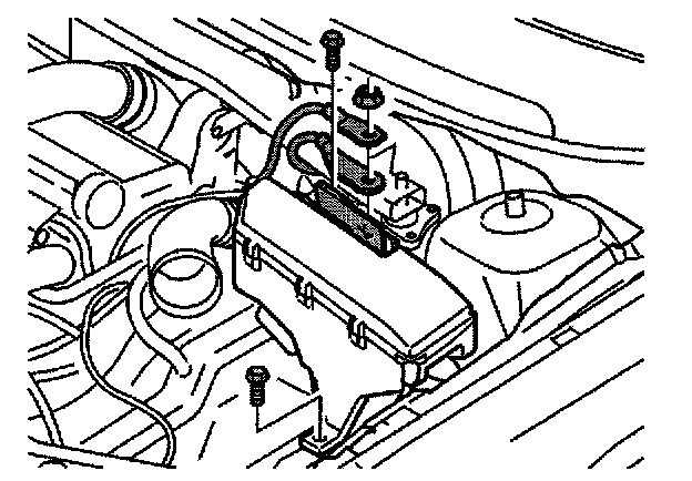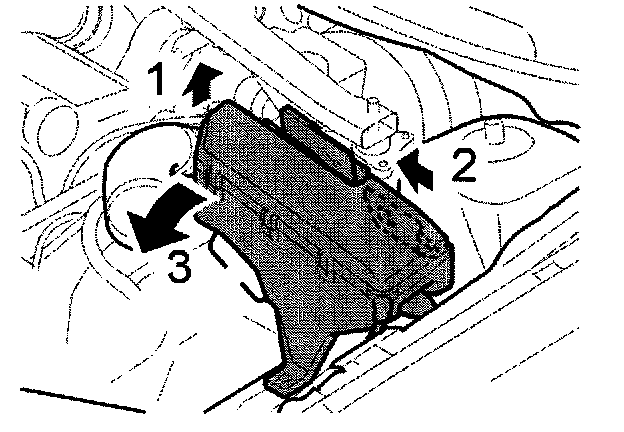 Disconnect the lower section of the electrical box from the spring strut housing by pressing it in towards the engine compartment.
