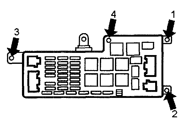 Caution! Ensure that the seals are correctly positioned when installing the holder. Note! Tighten screw 4 in the integrated fuse/relay box. Tighten to 2 Nm.