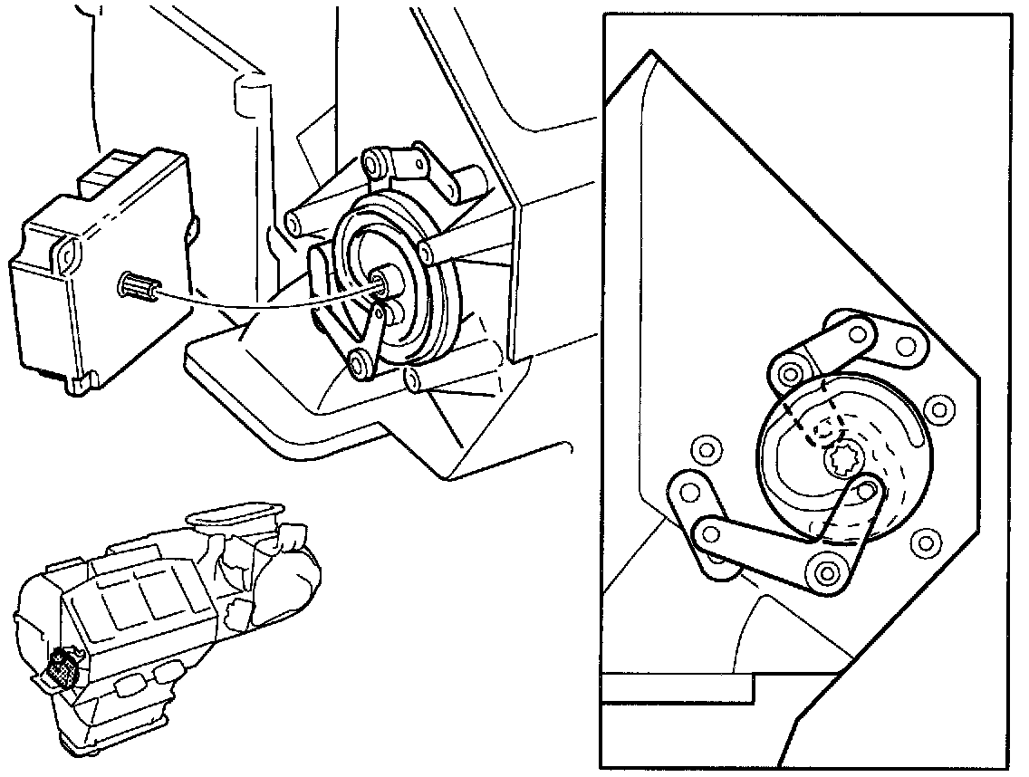 The damper motor drives a camwheel with a cam profile on each side. A tap, connected to the floor/defroster dampers' and ventilation dampers' axles respectively, runs through each cam profile via their own linkages The tap positions are changed by the cam profiles as the damper motor drives the camwheel round, and the positions of the dampers are affected by means of the linkages following the pattern of the cam profiles.