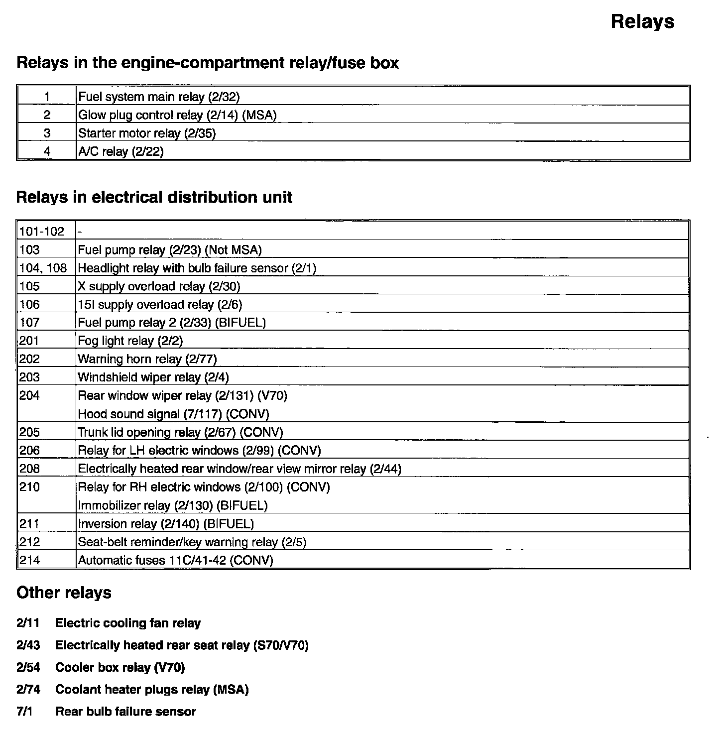 Fuses, 11C/37-42, Automatic fuses: