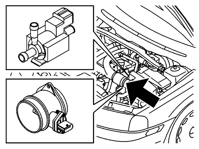 - Remove the clamp on the hose between the mass air flow (MAF) sensor and the pipe to the turbocharger (TC)