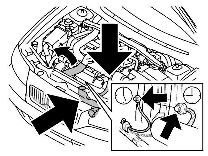 Disconnect the hose between the turbocharger (TC) and the charge air cooler (CAC) at its upper end. Push it to one side.