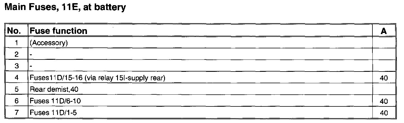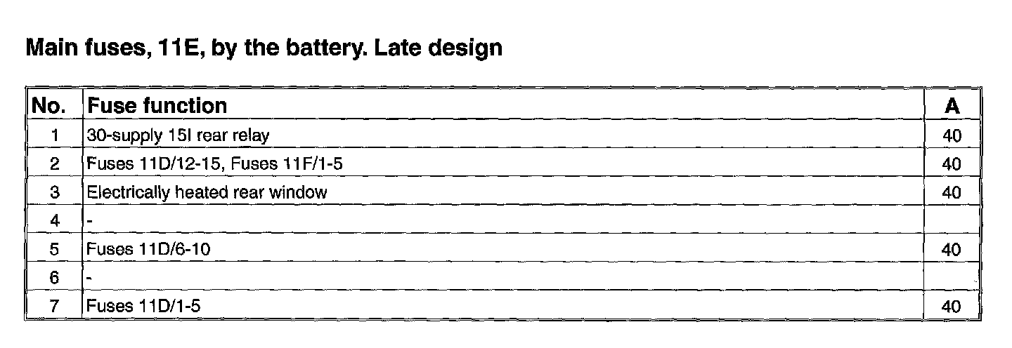 11E/1-7 Fuses By Battery, Late (S80 Executive):