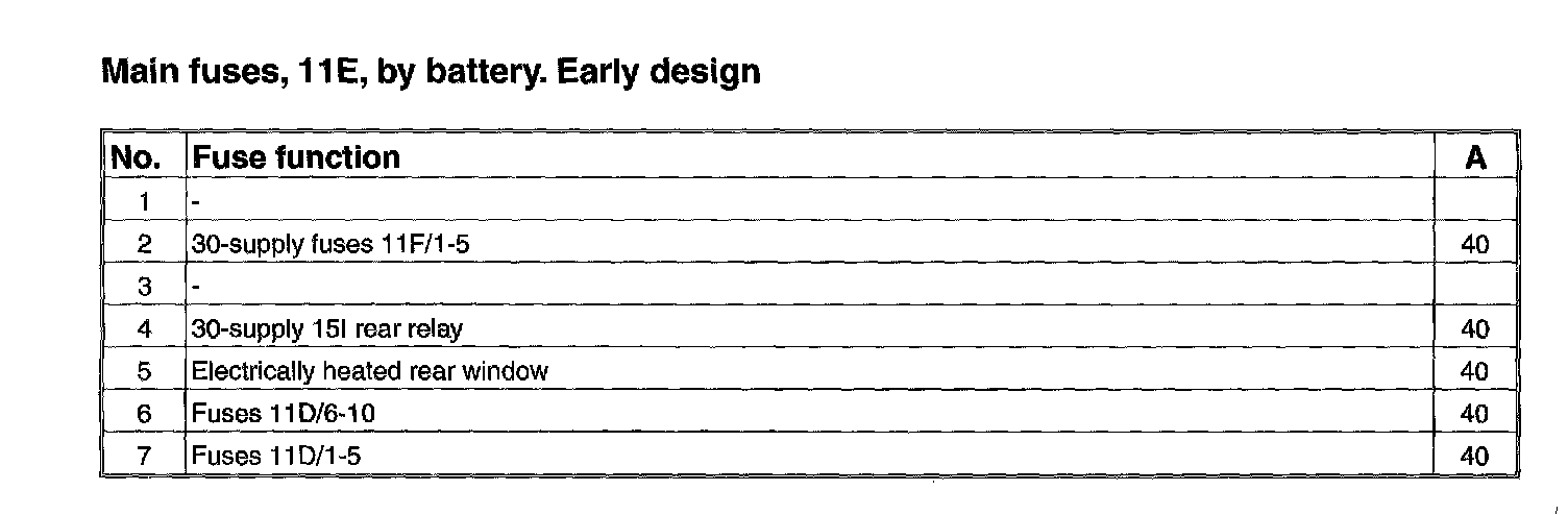 11E/1-7 Fuses By Battery, Early (S80 Executive):