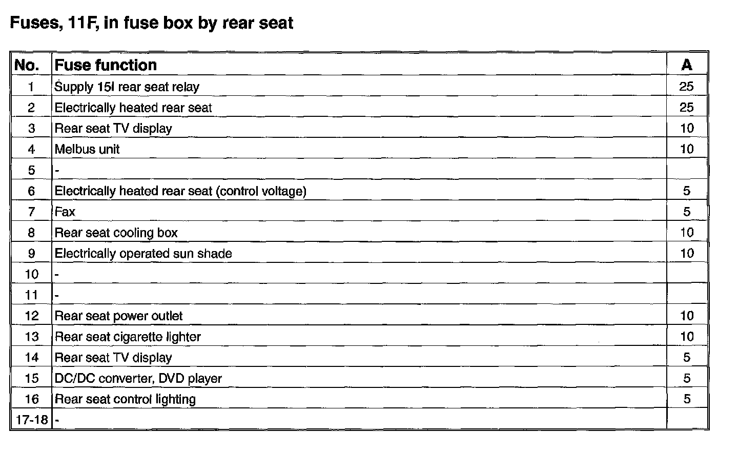 Fuses, In Fuse Box, Rear Seat: