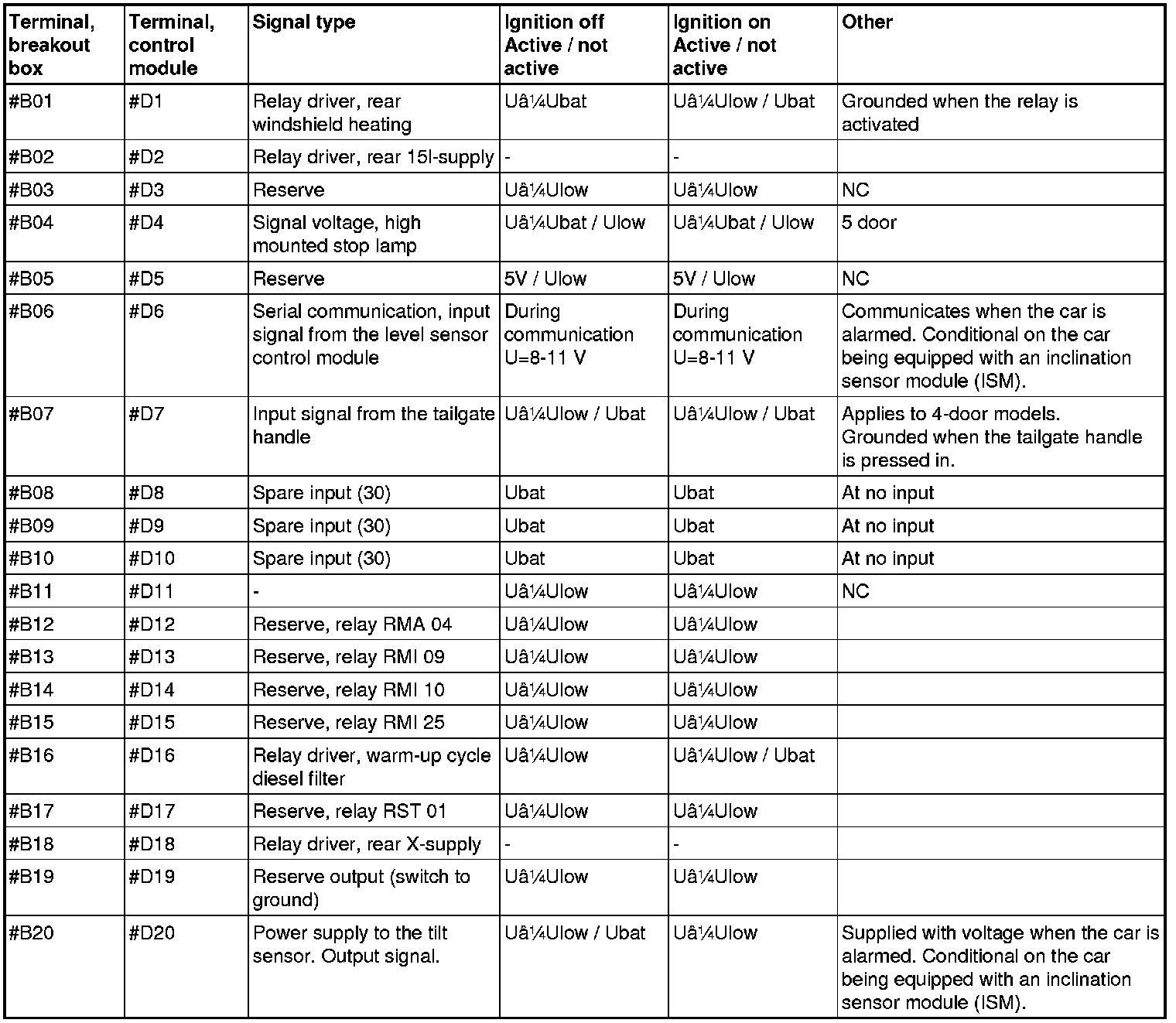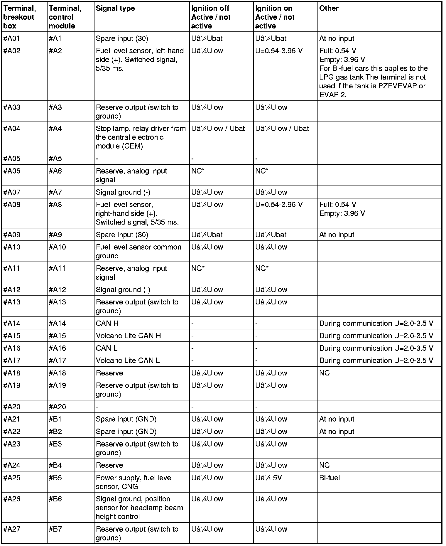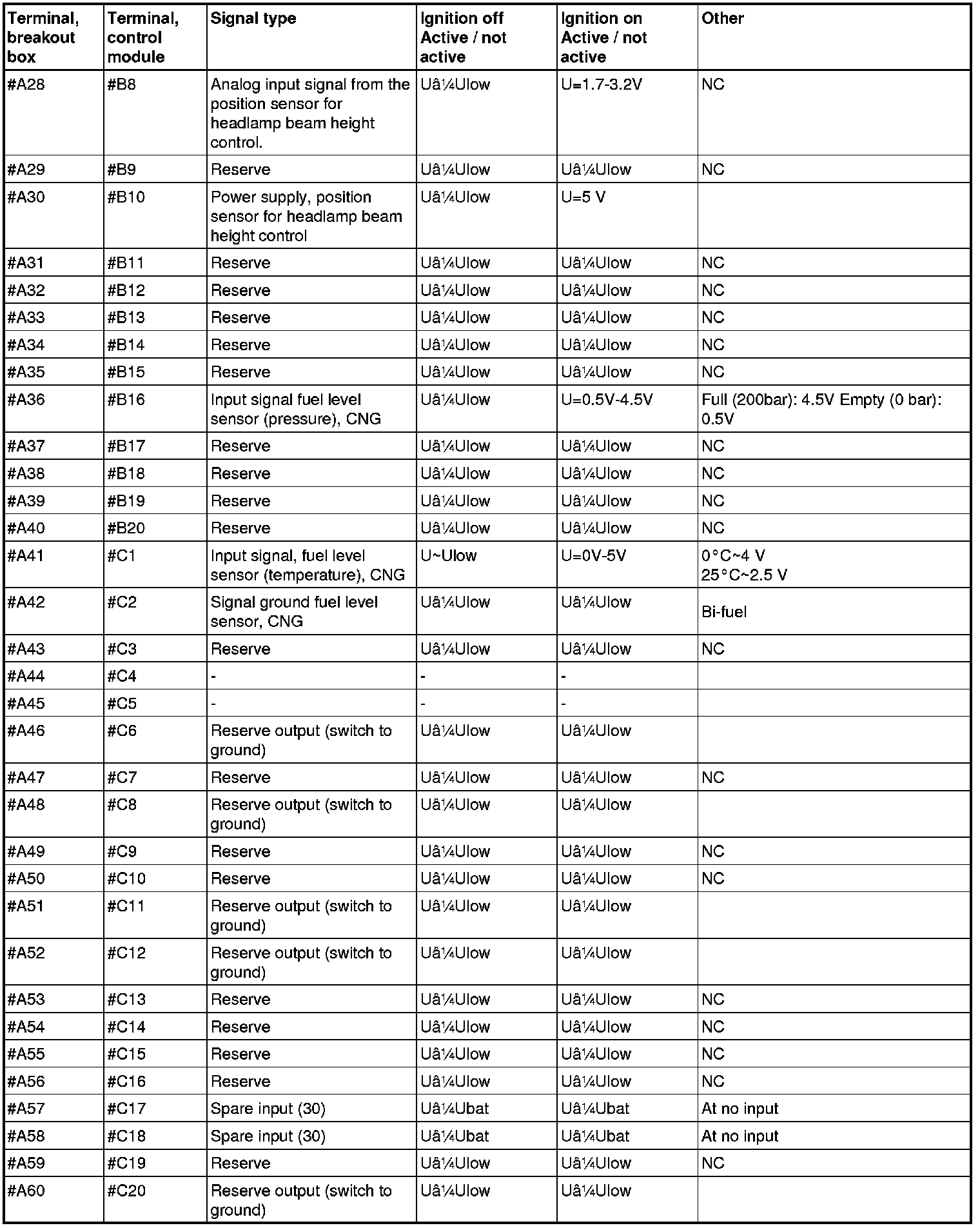 The following values are measured between the relevant terminal and terminal #E1 (power ground) unless otherwise stated.