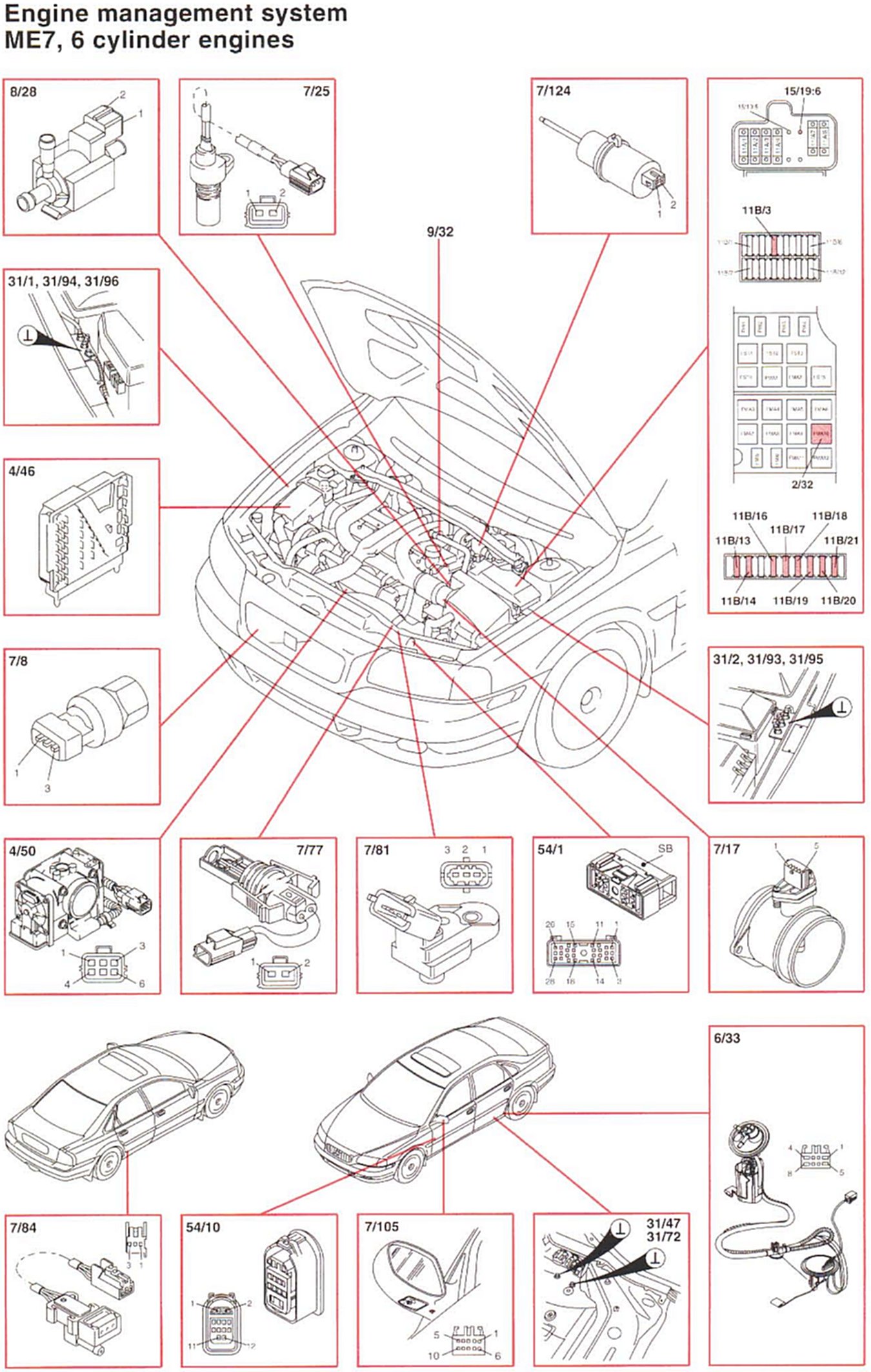Engine Control Module Components, S80, 2000/early, part 1 & 2