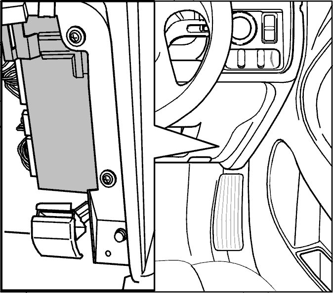 On right-hand drive cars, the control module for the central electronic module (CEM) is positioned under the panel by the control for opening the hood.