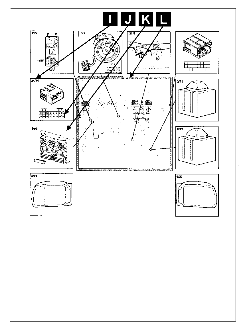 The connection for this central electrical unit (J1, J14 and so on) are on the page Relay box in the passenger compartment