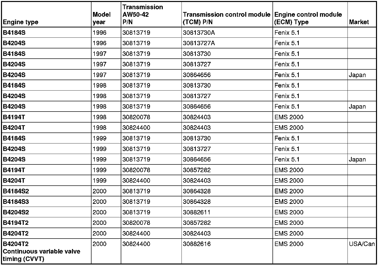 V40 L4-1.9L Turbo VIN 25 B4204T2