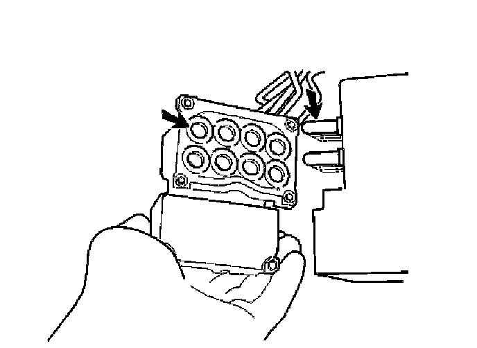 - Center the control module on the ABS hydraulic modulator valves before the valves are pushed into place