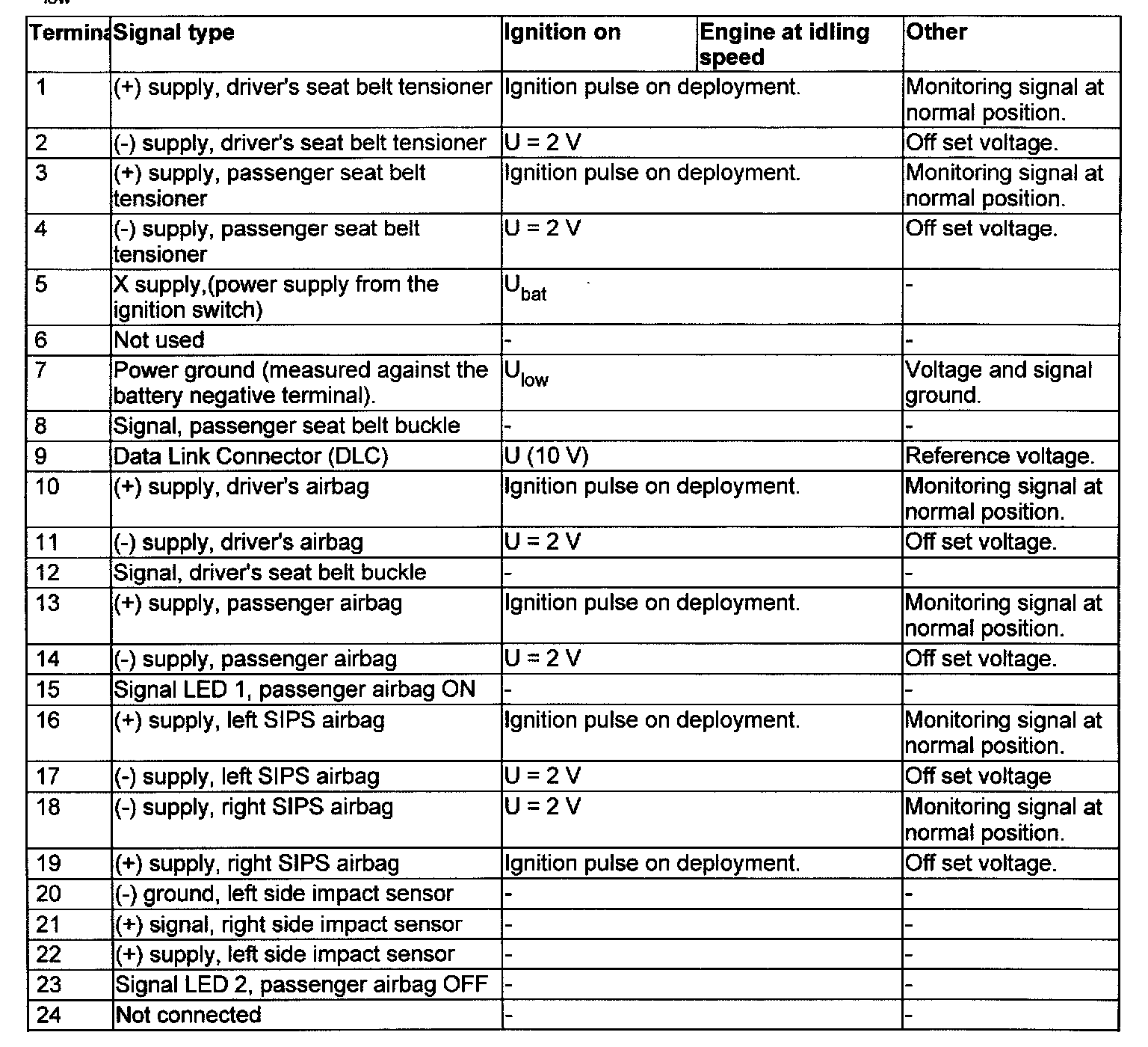 All values given below are between the respective terminal in column 1 and terminal 6 (power ground) unless otherwise stated in brackets after the table entry.