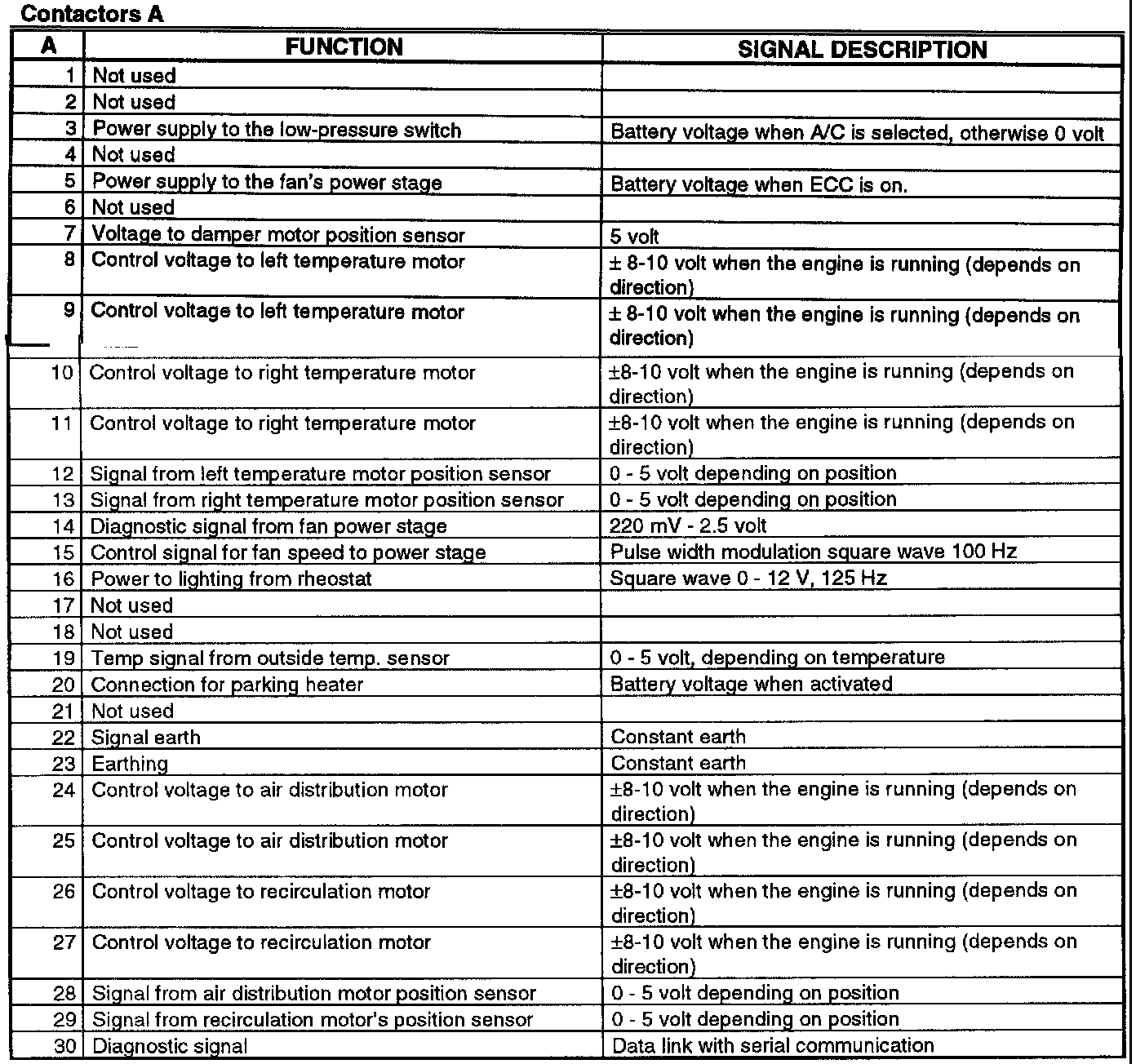Pinout Values and Diagnostic Parameters