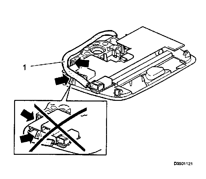 UEM processor sound being heard in the audio system. UEM has a long ground wire which in some cases can act as an antenna. Replace the interior light housing complete (see step 2).