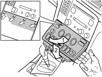 - Remove the left side panel (1) from the centre console by turning the clip and pulling the panel outwards and backwards