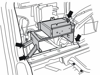 - Pull out the bracket with the radio. Pull the lower corner while pressing downwards