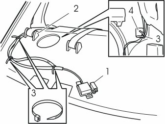 - Secure the cable harness at the cable duct using a tie strap (4) as illustrated.