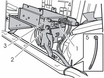 - Secure the cable at the rear crossmember and under the DVD reader using tie straps (3).