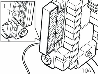 - Install a 10 A fuse in fuse socket 10 on the fuse holder.