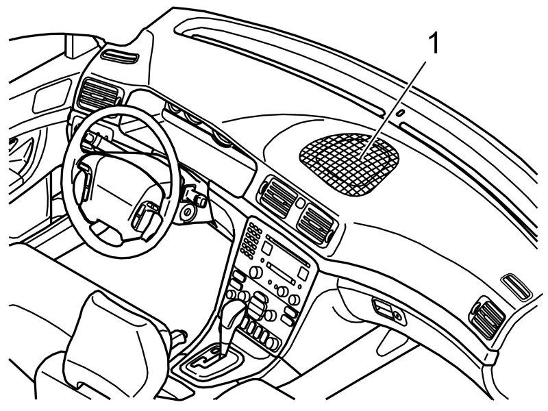 - Carefully remove the loudspeaker grille (1) on the dashboard. Use a weatherstrip tool or similar.