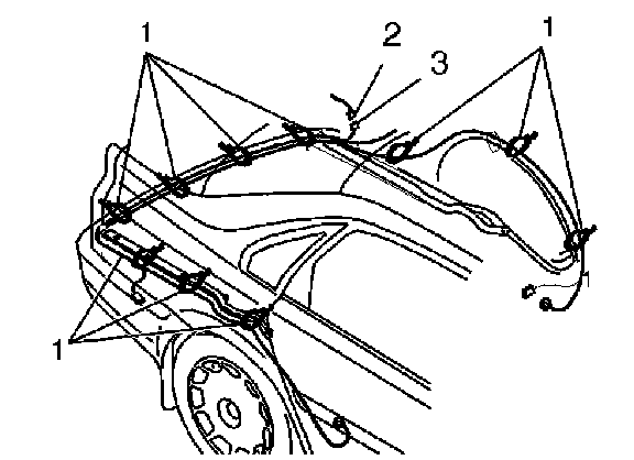 - Connect the connector (3) from the routed cable harness to the terminal (2)
