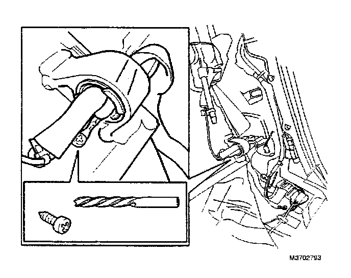Drill a 5 mm hole in the plate between the clamp for the backrest mounting and the clip for the wire for the seat belt tensioner.
