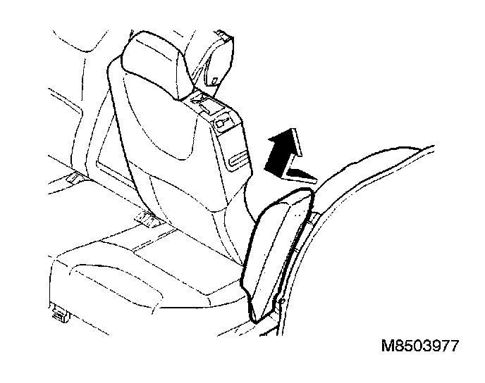 Fold the backrest cushion for the rear seat forward. Grip the side cushion as close to the upper mounting as possible.