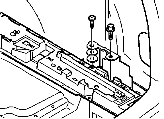- Position two new spacer washers between the front hole in the bracket and the floor support. Tighten using a new self tapping screw.