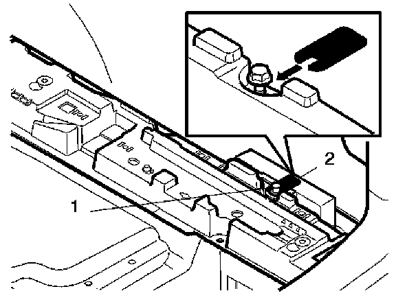 - Slacken off the rear screw (1) in the bracket for the accessory electronic module a few turns