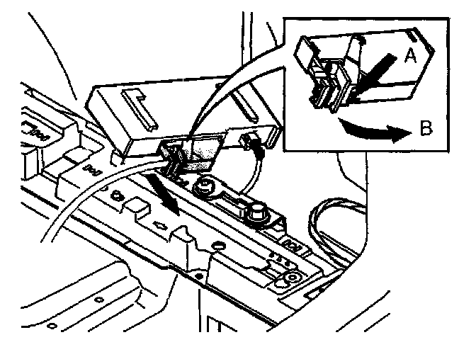 Press the catch (A) and pull the lock handle backwards. Pull the connector out of the control module.