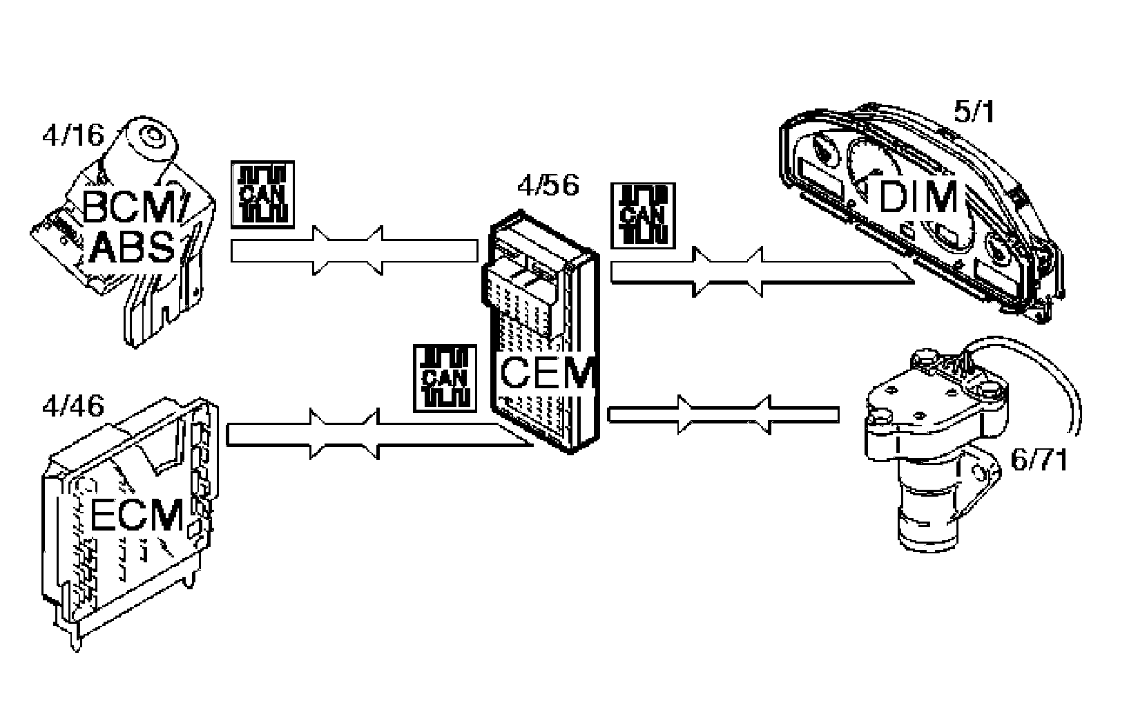 The central electronic module (CEM) also transmits a CAN signal to the driver information module (DIM) (5/1) to light the indicator lamp for high beam.