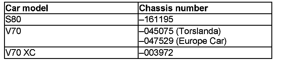 NOTE: The VIN number of the vehicle consists of 17 characters. The 7th character from the left indicates the installation plant. The last 6 characters are the chassis number. A 1 indicates Torslanda as the installation plant. A 2 indicates Europe Car as the installation plant.